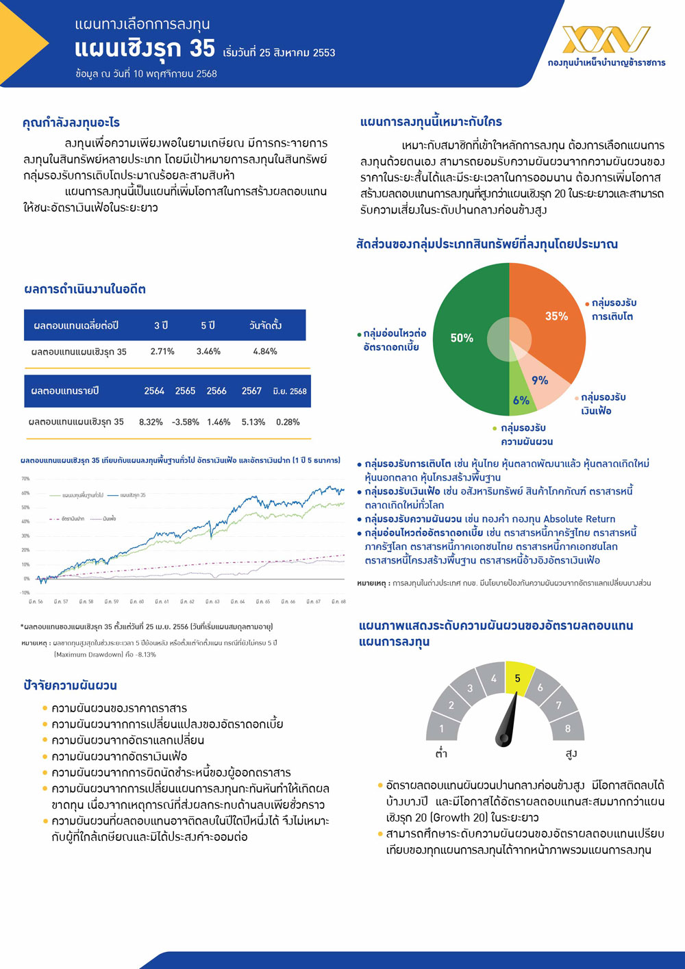 เหมาะสำหรับสมาชิกที่มีความรู้เรื่องการลงทุนและสามารถยอมรับความเสี่ยง จากความผันผวนของราคาในระยะสั้นได้ เช่น สมาชิกที่มีระยะเวลาการออมนาน หรือสมาชิกที่มีอายุน้อย
