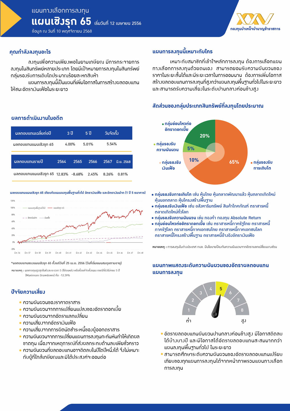 เหมาะสำหรับสมาชิกที่มีความรู้เรื่องการลงทุนและสามารถยอมรับความเสี่ยงสูง จากความผันผวนของราคาในระยะสั้นได้ เช่น สมาชิกที่มีระยะเวลาการออมนาน หรือสมาชิกที่มีอายุน้อย